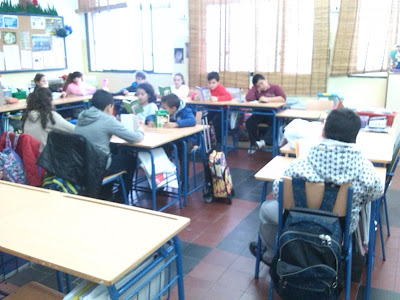 Hoy hemos hecho el dictado y antes hemos leído nuestros libros y los nuevos los hemos enseñado...